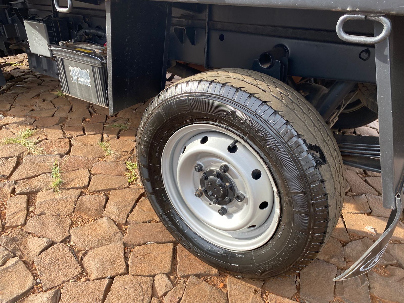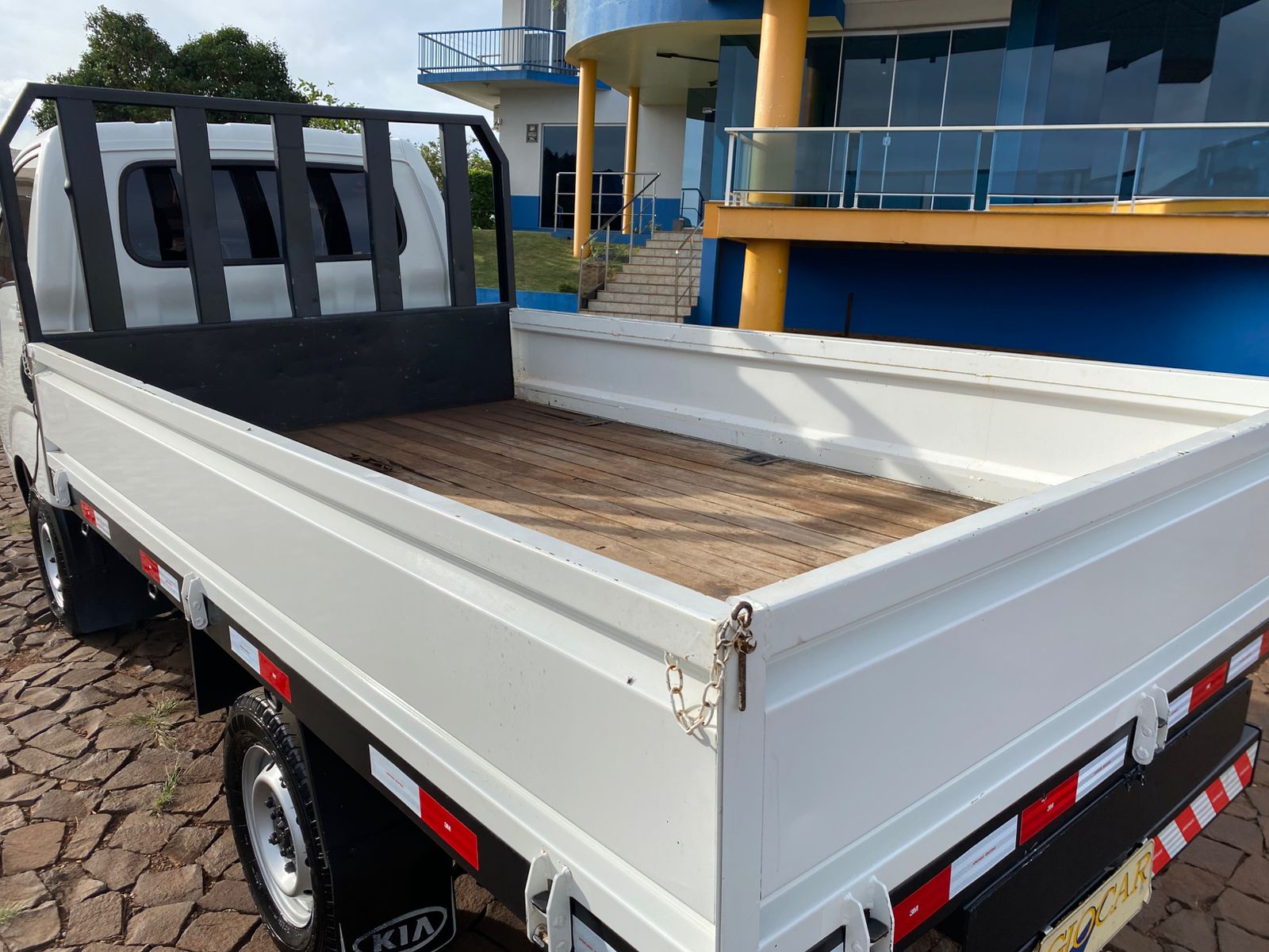 - Equipada com carroceria baixa de estrutura de ferro e tampas de ferro com assoalho de madeira nas medida: